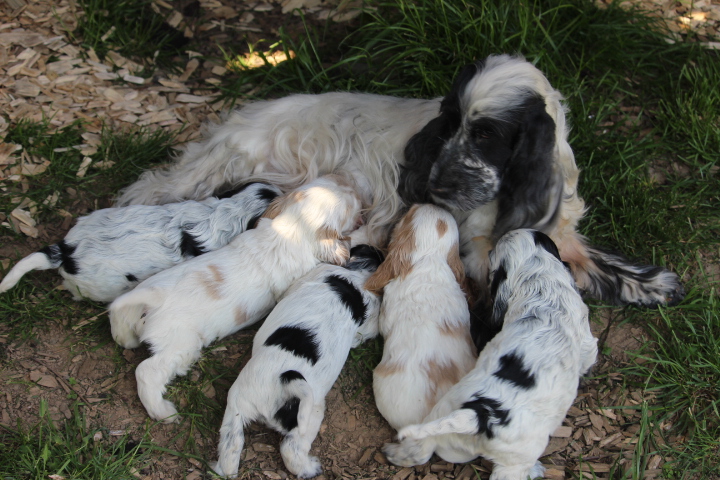 Am 02.05.2023 wurde unser B-Wurf geboren. Es kamen zwei Rüden und vier Hündinnen zur Welt. Alle haben gute Gewichte, Mutter und Welpen sind wohlauf.